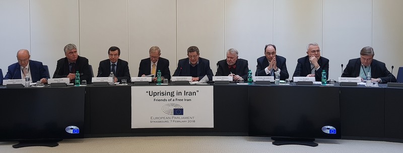 On Wednesday, 7 February, the 39th anniversary of the 1979 anti-monarchic revolution, a special meeting in support of the Iran uprising was held in the European Parliament in Strasbourg. Dozens of MEPs from various political groups participated and spoke about the nationwide protests which shook Iran and spread to 142 cities and to all 31 provinces.